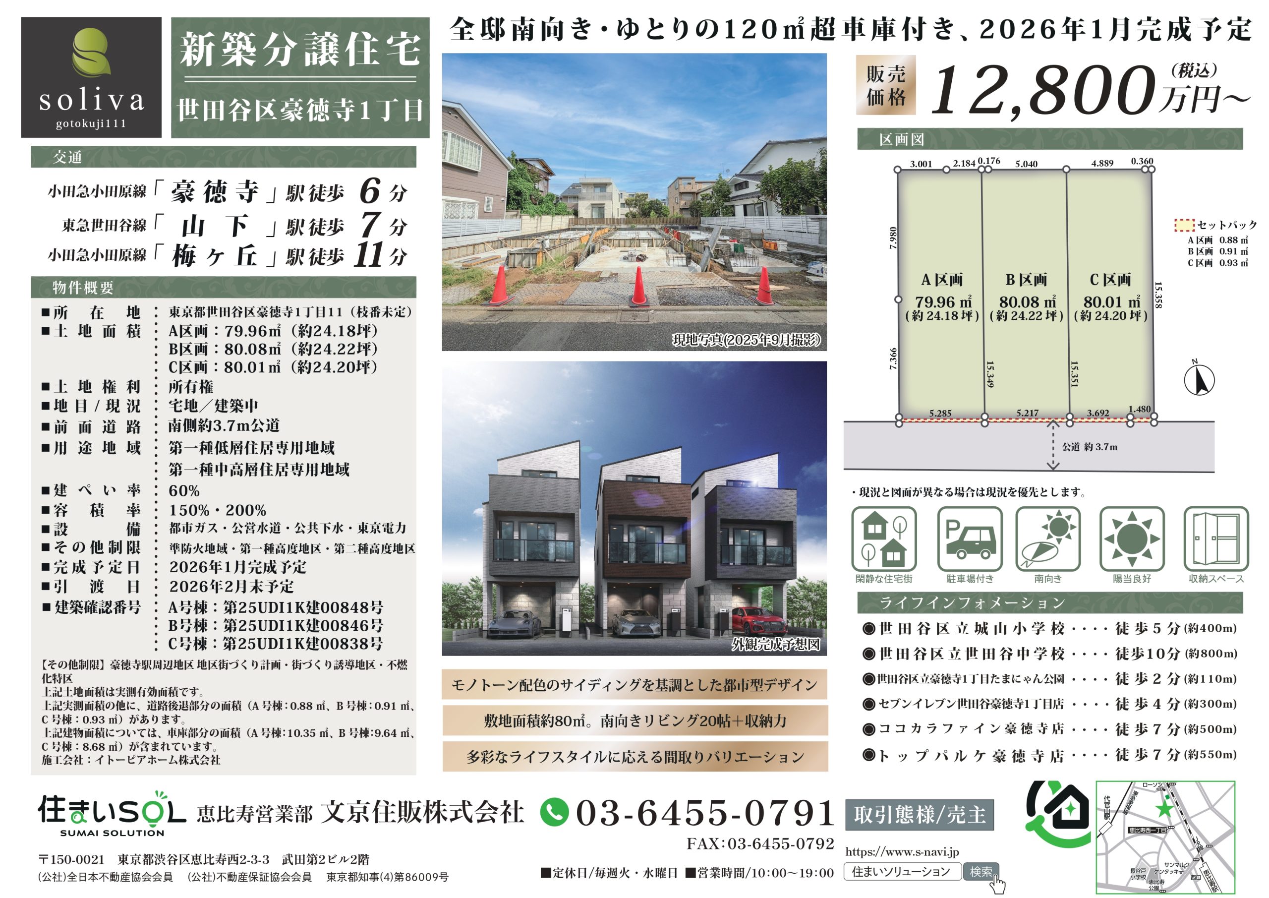 弊社売主物件|豪徳寺1丁目新築戸建3棟〈Soliva 豪徳寺111〉販売開始のお知らせ